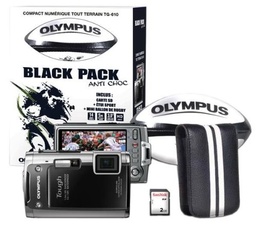 Black Pack TG-610 (Tough TG-610 + Sport-Etui + 2 GB SD-Karte + Mini-Rugbyball) inkl. Ladegerät, Lithiumakku (Ref: E0410000)